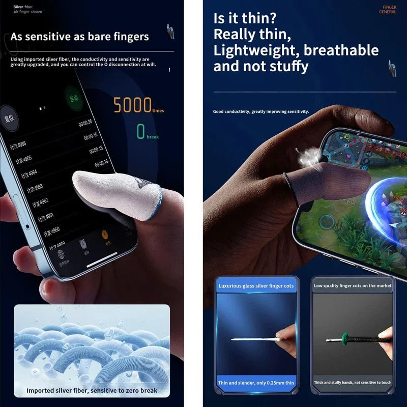 0.25mm Ultra-thin design, 360° fits most fingertips and fingers better, as light as nothing, does not affect the game.