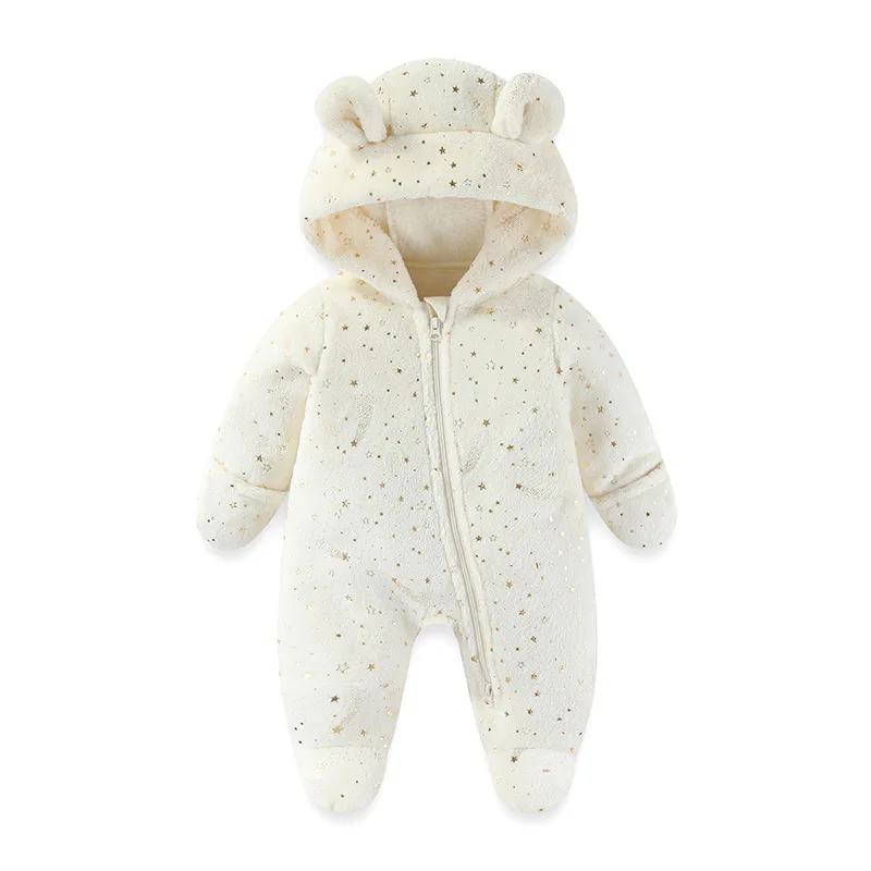 2025 Winter New Baby Clothes Fur Hoodie Toddler Rompers Fur Thicken Lining Boys Jumpsuits Infant Footies