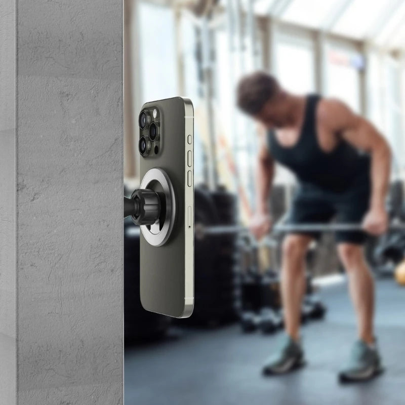 Universal wall mounted phone holder with strong for concrete and wooden wall, featuring 360 degree rotation for optimally viewing angles in both portrait and landscape mode.