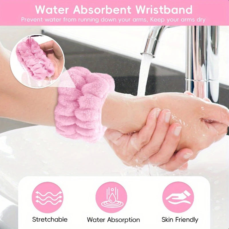7-piece makeup and face wash beauty set, including 3 headband sets, 1 cosmetic bag, 2 face wash brushes and 1 powder puff