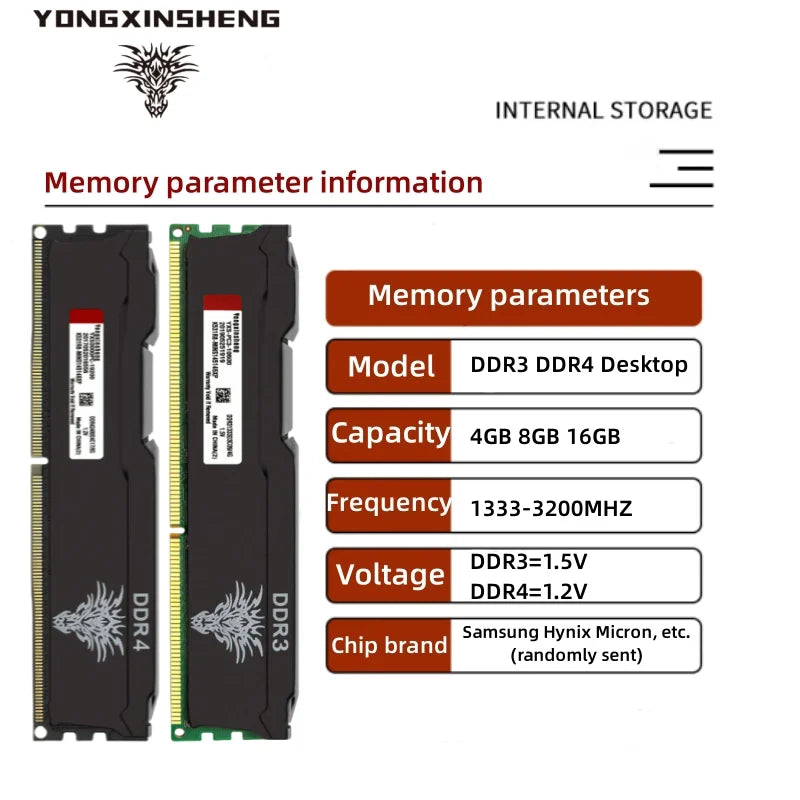 DDR3 DDR4 4GB 8GB 1600MHZ 1866 2400 2666MHZ PC3-12800 PC4-21300 16GB 3200MHZ DIMM Unbuffered Non-ECC Gaming Desktop Memory Ram