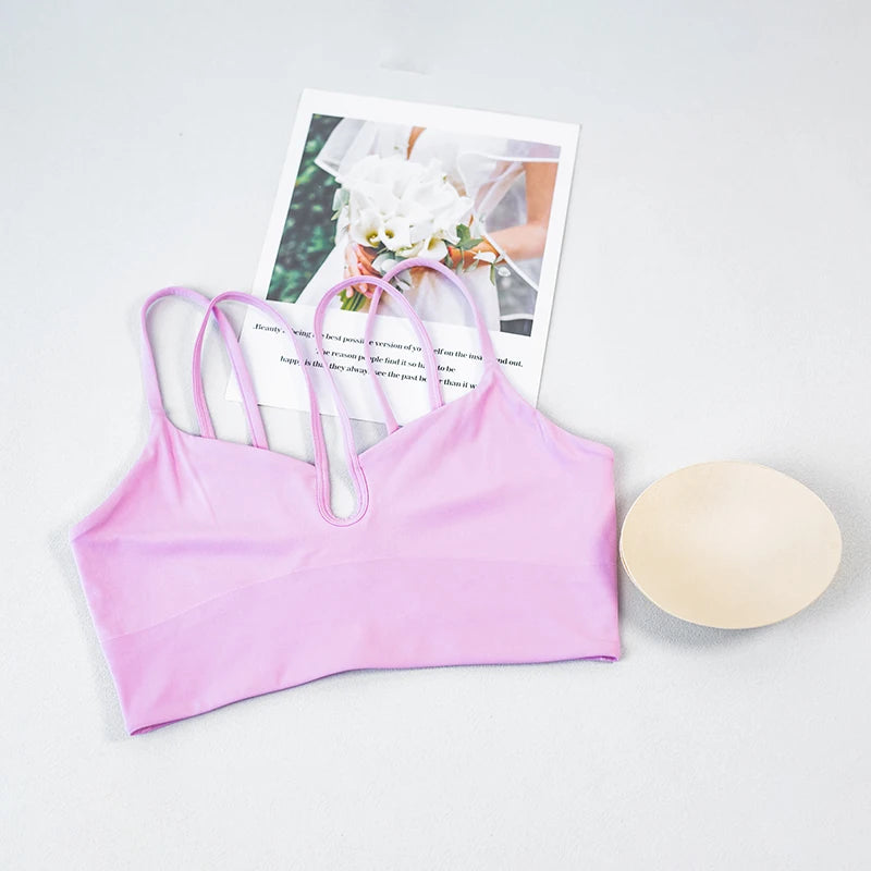 Fitness Sports Bra Women's Top Solid Color Multi Belt Cross Back Gym Yoga Fitness Tight Soft Detachable Chest Mat