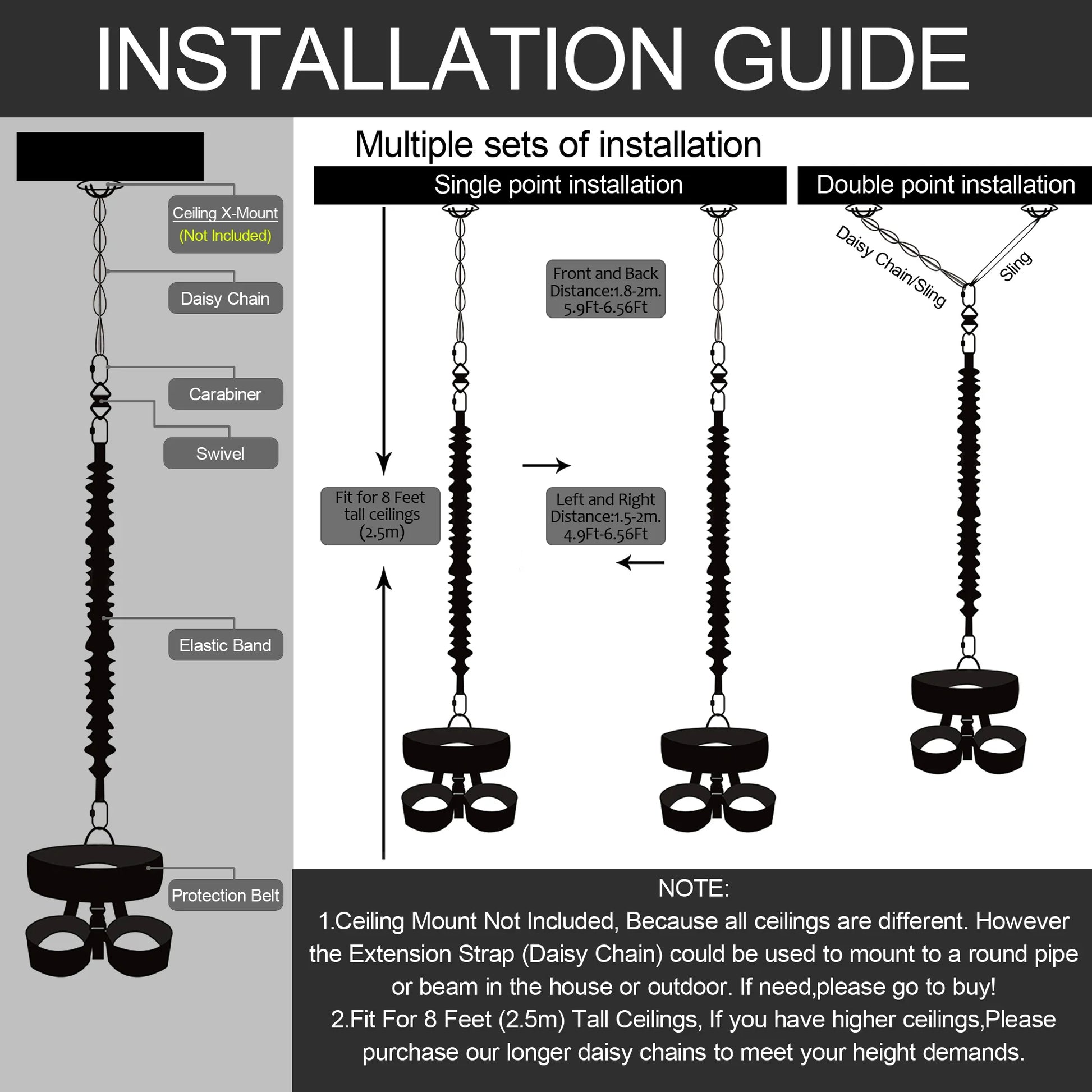 Included Extension Straps (daisy chains) can be used to mount to an exposed structural beam or weight bearing piping; professional installation recommended.