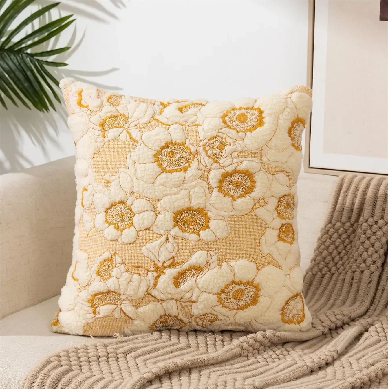 Home Decor Floral Cushion Cover Embroidered Flower Linen Simple Sofa Headboard Pillow Case Office Cushion Cover Cogines 45x45cm