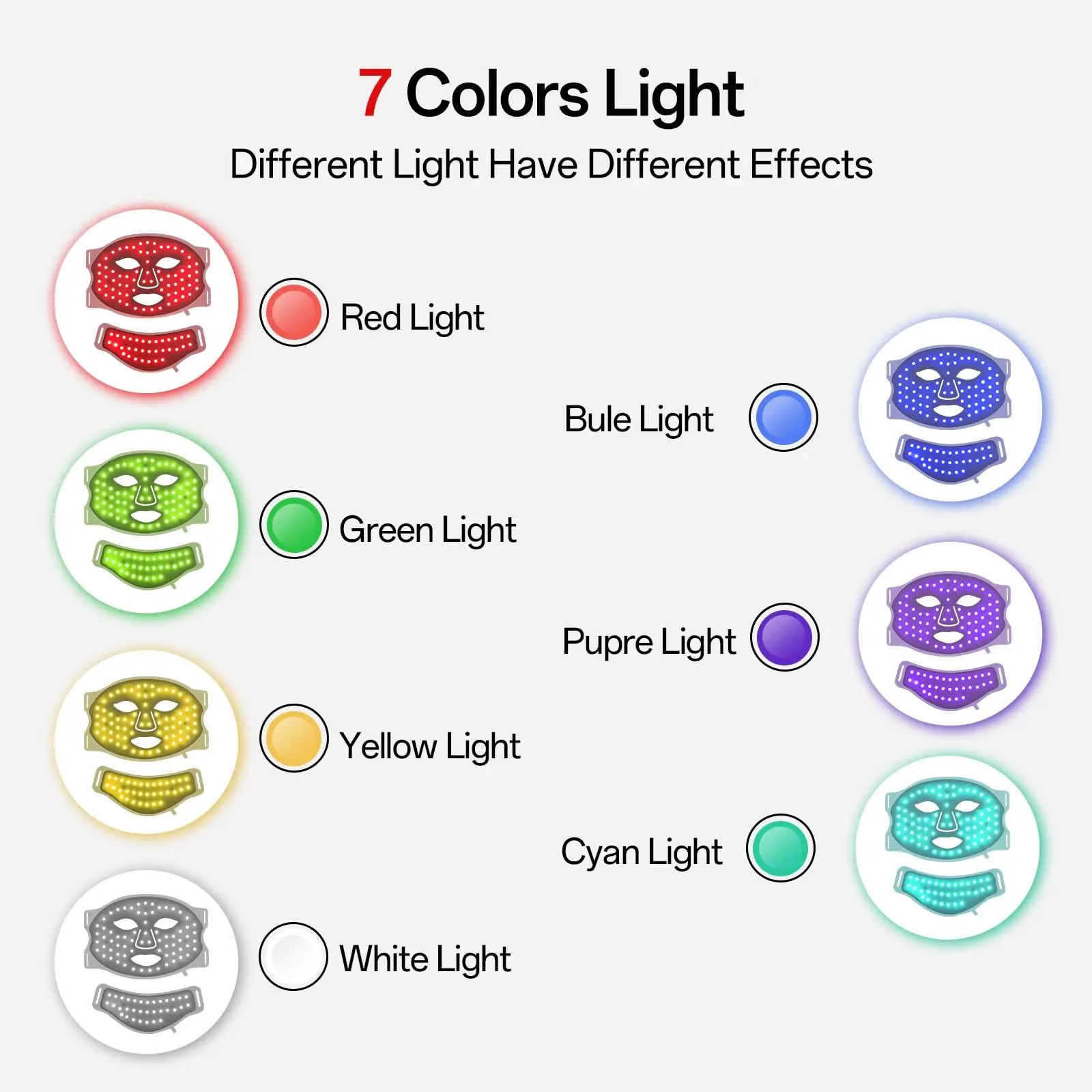 Portable 7 Colors Led Face Mask Skin Care Beauty Device Red Light Therapy Mask USB Rechargeable and Ergonomic Design for Home