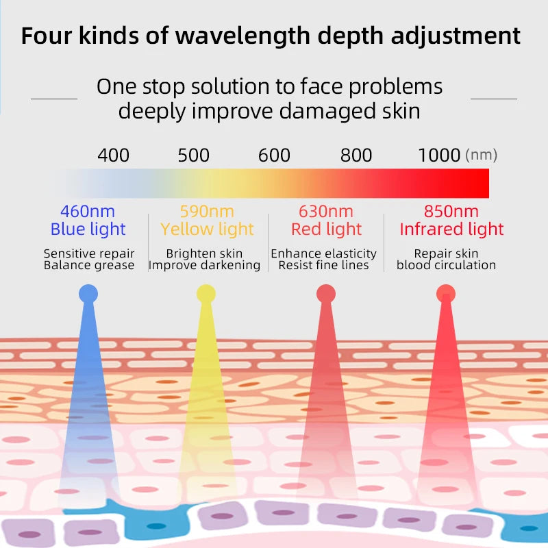 Near-Infrared light: 850nm-repair the skin,improve blood circulation,increase skin moisture