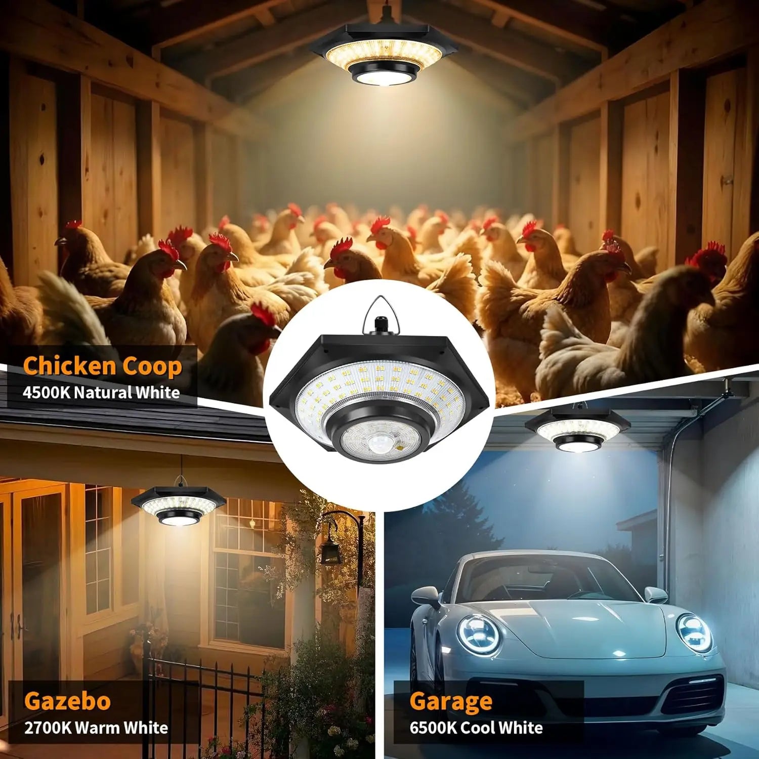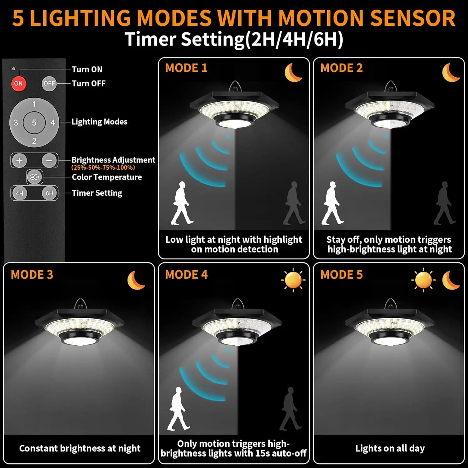 Solar Pendant Lights Outdoor Solar Shed Light Motion Sensor 288 LEDs Dimmable Indoor Barn Lamp Waterproof Gazebo Yard Garage Pat