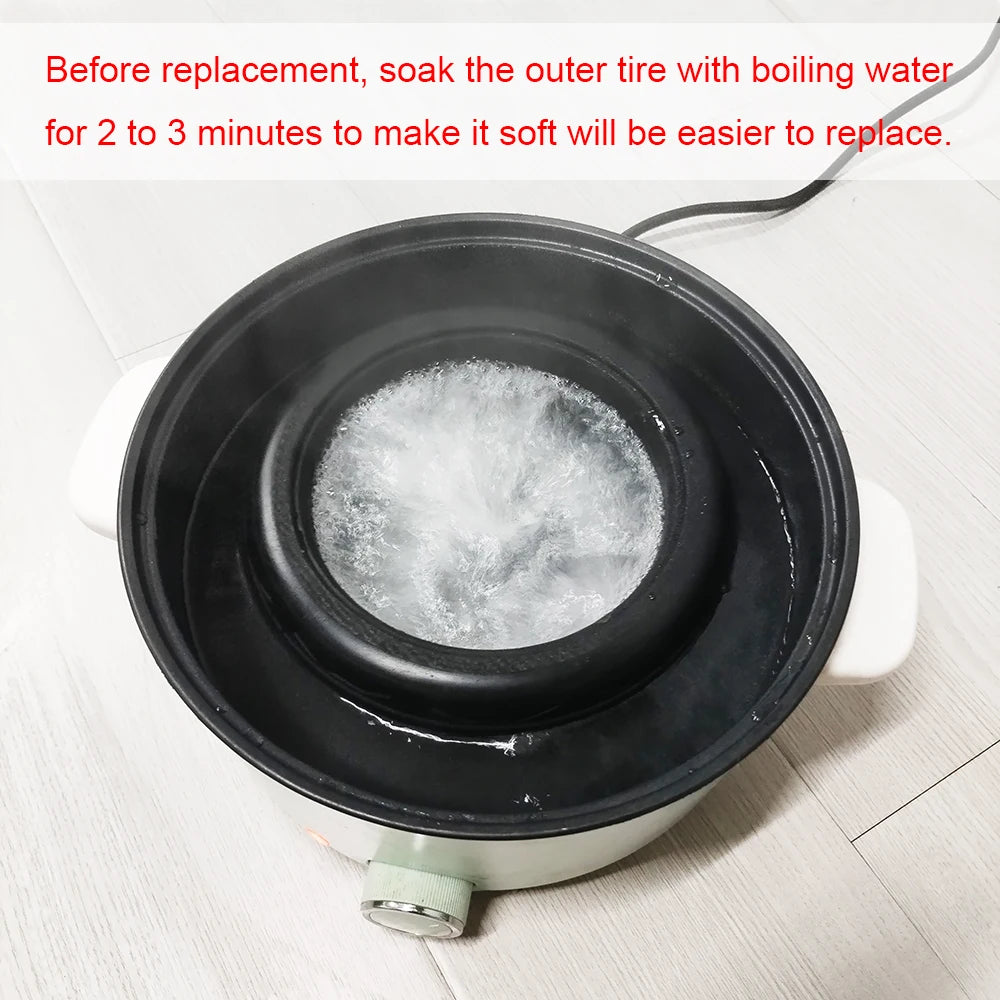 2. The outer tire will be easier to replace after being soaked in boiling water for 2 to 3 minutes to make it soft.