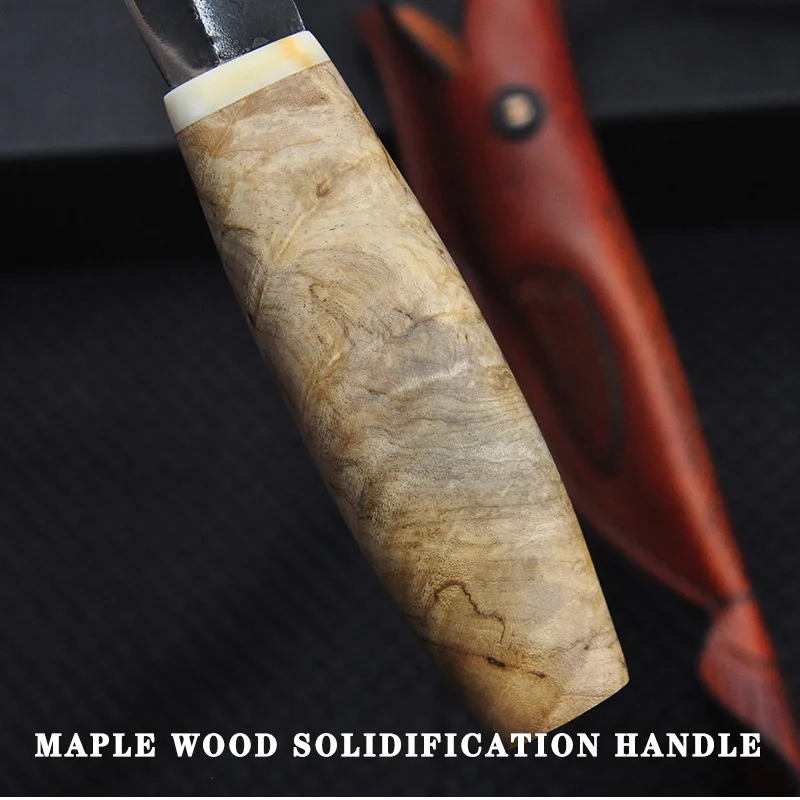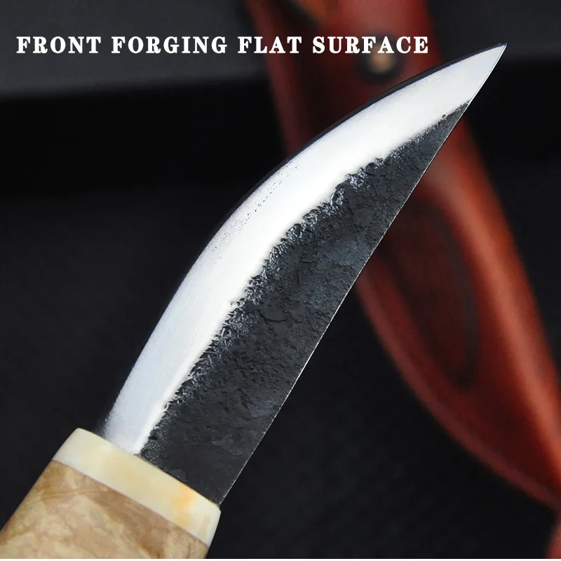 This knife is hand forged from 1095 high carbon steel by a master craftsman, which takes a very long time to work and has a very low yield rate. Because it is hand forged, the shape of each handle is slightly different.